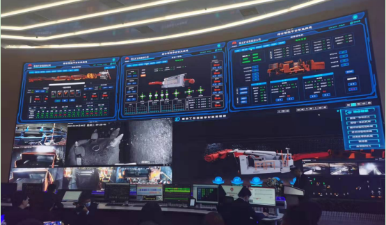 突破掘錨一體機高精度導航、關鍵位置自主檢測、遠程多機協(xié)同等難題,并通過萬兆網絡系統(tǒng)、視頻監(jiān)控系統(tǒng)、組合導航系統(tǒng)、多機協(xié)同控制系統(tǒng)實現了遠程多機協(xié)同、掘錨一體機三維姿態(tài)監(jiān)測,自動導航及掘錨機跑偏預警,實現了掘錨一體機整機工況參數監(jiān)測、工作面視頻監(jiān)控、掘錨一體機關鍵位置自主檢測、人員安全預警、機身自主定位導航、遠程可視化監(jiān)控,實現了巷道掘、支、運平行作業(yè)和工作面遠程監(jiān)控操作臺及地面遠程集中控制。工作面由18人減至8人,掘進工效提升至2.31m/工,創(chuàng)造了最高班進65米,最高日進120米,月進2702米的歷史記錄,常態(tài)化月進保持在2000米以上。