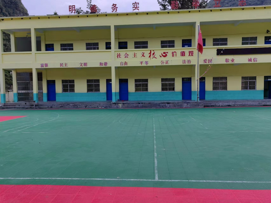 “明德、實務、勤學、立志”八字校訓聳立于嶄新的教學樓頂,為學生們指明人生方向,經(jīng)過修繕的教室窗明幾凈,新建的學生餐廳寬敞明亮,米黃色教學樓配上綠色地面,幫助學生們在課余更好的放松眼睛,剛鋪設的籃球場地為孩子的體育夢想插上翅膀,經(jīng)過幾個月的努力,觀音小學舊貌換新顏。