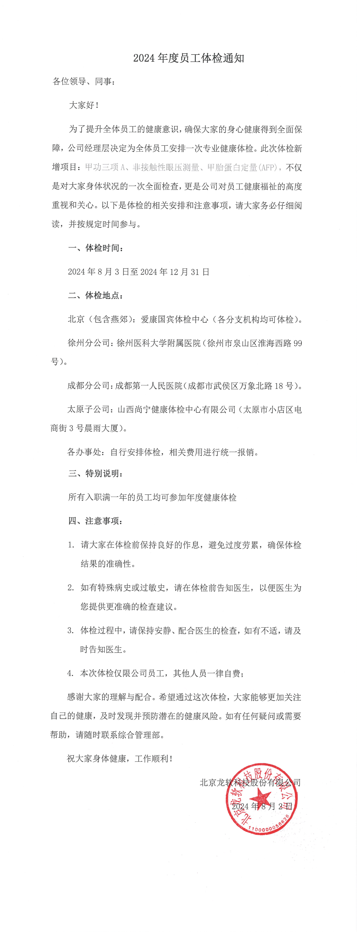 • 2024年度員工體檢通知