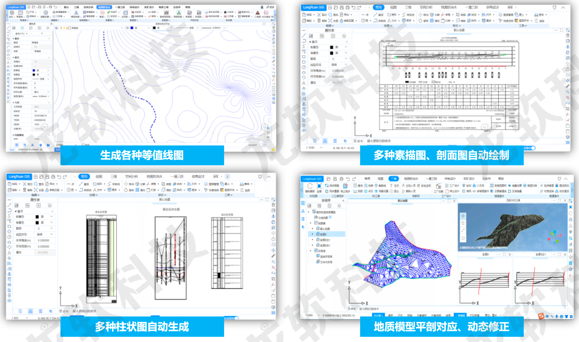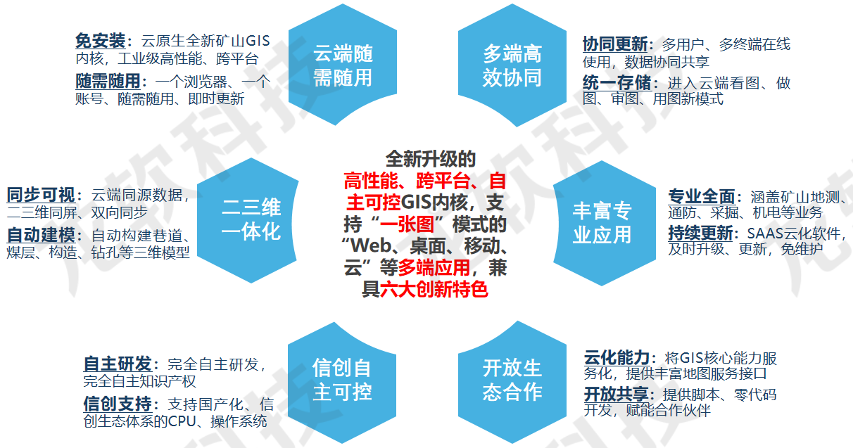 基于云服務(wù)架構(gòu)的龍軟云GIS(云地理信息系統(tǒng),簡稱“龍軟智圖v1.0”)龍軟科技從底層開發(fā)的、具有完全自主知識產(chǎn)權(quán)的新一代專業(yè)地理信息系統(tǒng)。該產(chǎn)品基于云服務(wù)、大數(shù)據(jù)、分布式協(xié)同、時空智能等技術(shù),針對礦山地測防治水、透明化地測保障、一通三防、采礦設(shè)計和供電設(shè)計等多維專題圖形處理實際需求,采用面向服務(wù)的架構(gòu)體系開發(fā),具有實用、易用、先進、可靠、可擴展等特點。