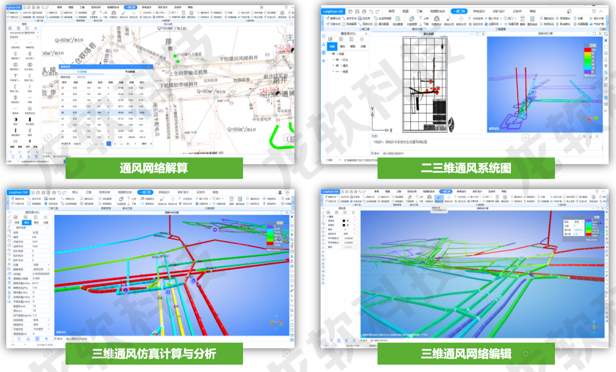 龍軟GIS系列產(chǎn)品作為國內(nèi)知名的礦山地理信息系統(tǒng)軟件平臺,經(jīng)過 20余年的研發(fā)積累,經(jīng)歷了v1.0、v2.0、v3.0、v3.2、v3.5 等版本迭代升級,始終堅持自主研發(fā)、技術(shù)領(lǐng)先的宗旨,為透明地質(zhì)保障系統(tǒng)提供了必需的數(shù)據(jù)處理平臺,有效支撐透明地質(zhì)保障系統(tǒng)的常態(tài)化、持久運行。目前全國煤礦裝機已超過7萬臺套,累計使用單位超過1800多家,市場占有率大于85%,平均每月總交互操作超過2200萬次。