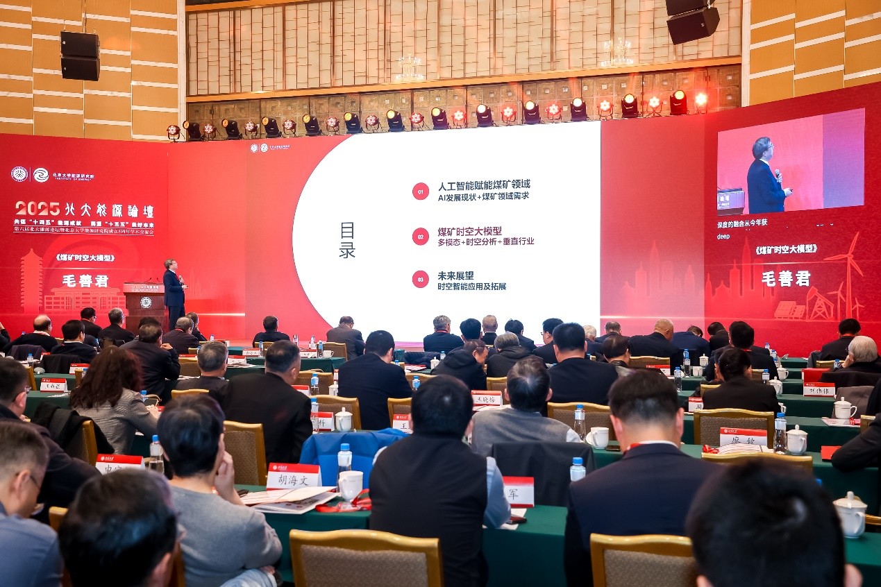 2025年10月28日,第六屆北大能源論壇暨北京大學(xué)能源研究院成立五周年學(xué)術(shù)交流會(huì)在北京大學(xué)隆重舉行。在黨的二十屆四中全會(huì)精神指引下,本屆論壇以“回顧‘十四五’能源成就,展望‘十五五’美好未來”為主題,進(jìn)行了廣泛而深入的學(xué)術(shù)交流。北京大學(xué)黨委書記何光彩出席了論壇活動(dòng),中國科學(xué)院、中國工程院共27位院士及一位國外院士出席了論壇。國際能源署署長法提赫·比羅爾(Fatih Birol)、北京大學(xué)副校長樸世龍?jiān)菏?、中國能源研究?huì)理事長史玉波、中國石油學(xué)會(huì)理事長焦方正、鄂爾多斯市副市長張秀玲分別致辭。中國科學(xué)院院士、北京大學(xué)能源研究院院長、北京大學(xué)鄂爾多斯能源研究院院長金之鈞作研究院五周年工作匯報(bào)。北京大學(xué)教授、北京大學(xué)能源研究院智慧能源方向負(fù)責(zé)人、北京大學(xué)鄂爾多斯能源研究院智慧礦山方向首席科學(xué)家、我公司董事長毛善君參加論壇并作《煤礦時(shí)空大模型》主旨報(bào)告。