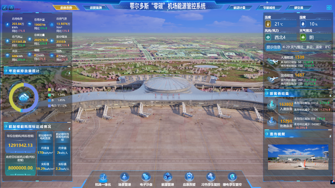 龍軟科技承建的鄂爾多斯零碳機(jī)場能源管控系統(tǒng)