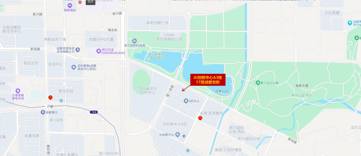 成都龍軟新址:中國(四川)自由貿(mào)易試驗區(qū)成都市高新區(qū)和樂一街71號AI創(chuàng)新中心A3棟17層