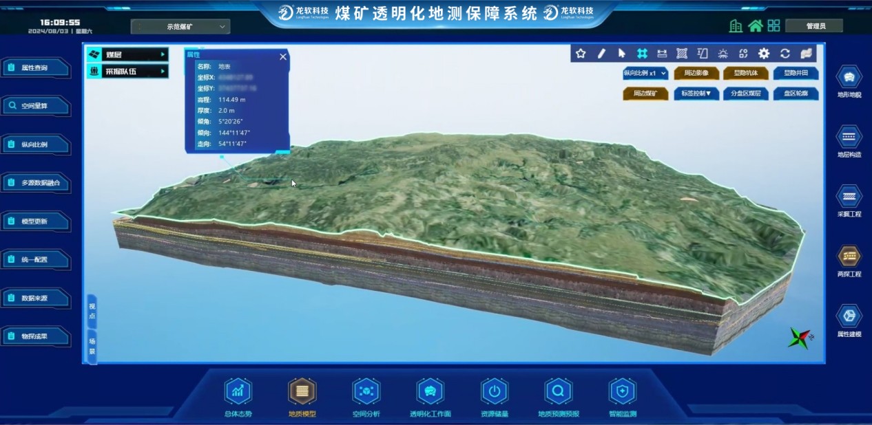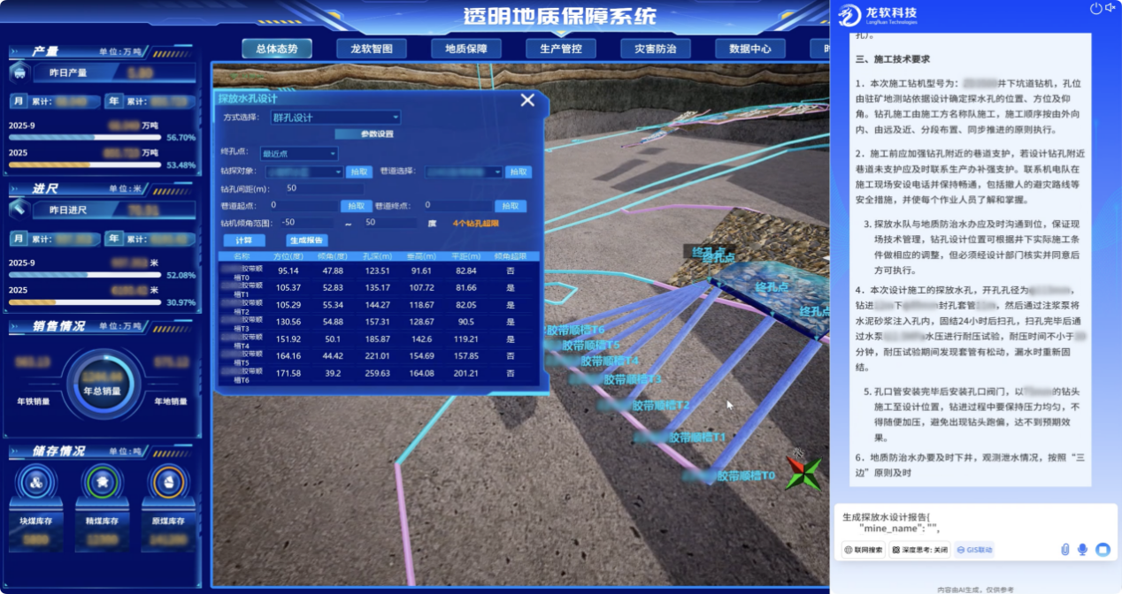 該平臺實現(xiàn)了數(shù)據(jù)、圖形和模型的一體化處理,支持煤礦地質、測量、通防、機電、生產(chǎn)等專業(yè)自動成圖、同步建模和時空信息的高度共享和動態(tài)處理,有效破解了長期困擾行業(yè)的包括地質建模與更新在內的“卡脖子”關鍵技術難題。系統(tǒng)兼具的技術先進性與場景實用性,創(chuàng)新實現(xiàn)了時空信息云服務,在實現(xiàn)時空信息云服務的同時,深度融合了龍軟科技多年積累的煤礦GIS專業(yè)化應用成果,不僅全面推動了礦山安全生產(chǎn)業(yè)務的數(shù)字化轉型,更以高精度三維模型為支撐,為煤礦智能采掘、智能通風和災害預警提供了堅實的技術底座與可視化決策平臺。