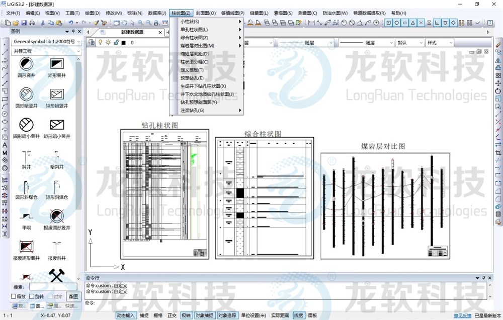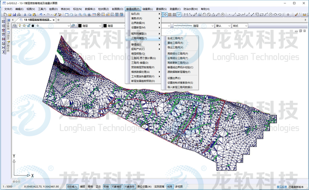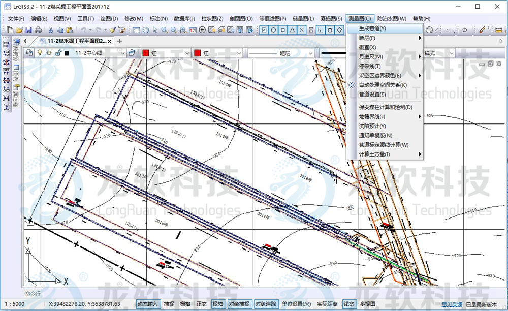 地測圖形協(xié)同管理系統(tǒng)主要包括地測數(shù)據(jù)庫管理、等值線圖、測量圖、儲量圖、柱狀圖、剖面圖、素描圖、防治水圖、瓦斯地質(zhì)圖等模塊。該系統(tǒng)以先進的算法、精準(zhǔn)的空間數(shù)據(jù)信息處理、高效的圖形處理流程,實現(xiàn)等值線圖、采掘工程平面圖、鉆孔柱狀圖、綜合柱狀圖、煤巖層對比圖、勘探線剖面圖、預(yù)想剖面圖、底板等高線及儲量估算圖、巷道素描圖等地測圖件的繪制與管理,是礦井相關(guān)專業(yè)制圖的基礎(chǔ)。
