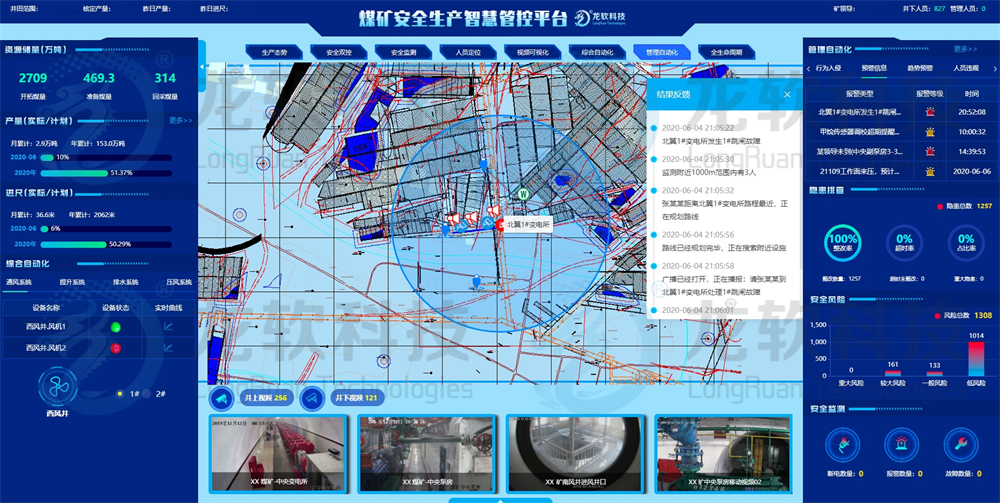 系統(tǒng)以LongRuan TGIS及LongRuan 4D-GIS平臺為基礎(chǔ),依據(jù)“工業(yè)互聯(lián)網(wǎng)+智慧礦山”綠色開采、高質(zhì)量發(fā)展的運(yùn)營技術(shù)路線,采用礦山多維GIS“一張圖”管理理念,將煤礦“采、掘、機(jī)、運(yùn)、通”等主要生產(chǎn)系統(tǒng),以及井下環(huán)境安全、人員定位等實(shí)時系統(tǒng)進(jìn)行融合,形成全面感知、實(shí)時互聯(lián)、分析決策、自主學(xué)習(xí)、動態(tài)預(yù)測、協(xié)同控制的安全生產(chǎn)智能化管控平臺,對井上下海量多源異構(gòu)數(shù)據(jù)可視化展示、分析、挖掘和利用,實(shí)現(xiàn)礦井多部門、多專業(yè)、多管理層面的數(shù)據(jù)集中應(yīng)用、交互共享和決策支持,實(shí)現(xiàn)各主要業(yè)務(wù)系統(tǒng)的智能操控與協(xié)同聯(lián)動控制,服務(wù)于智能綜采、綜掘、通風(fēng)、提升、運(yùn)輸?shù)葮I(yè)務(wù)部門,為企業(yè)領(lǐng)導(dǎo)層正確決策提供科學(xué)依據(jù),使領(lǐng)導(dǎo)和管理部門能夠及時、全面、準(zhǔn)確地掌握情況,實(shí)現(xiàn)對“地域、業(yè)務(wù)”的全覆蓋,提升煤礦安全生產(chǎn)管理水平。