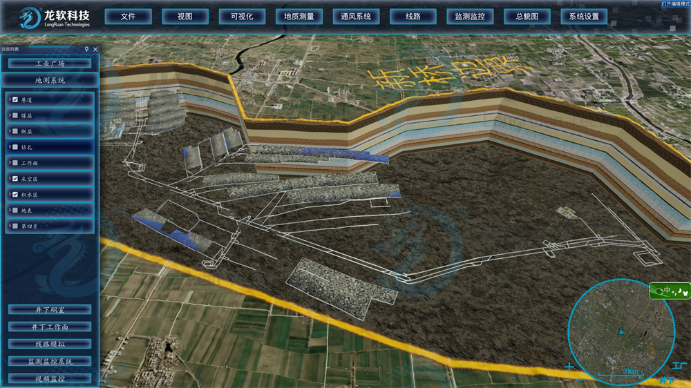 基于TGIS+BIM技術(shù)的透明化礦山系統(tǒng)融合多源數(shù)據(jù),利用虛擬現(xiàn)實仿真技術(shù),可視化展現(xiàn)礦山井上下全貌。該平臺基于灰色地理信息系統(tǒng)理論,設(shè)計了適應(yīng)煤炭行業(yè)特點的地理信息系統(tǒng)數(shù)據(jù)模型和數(shù)據(jù)結(jié)構(gòu),特別是具有煤礦特色的斷層、巷道、地層的拓撲數(shù)據(jù)結(jié)構(gòu)。系統(tǒng)全面構(gòu)建了礦井采、掘、機、運、通各專業(yè)子系統(tǒng)的仿真場景,實現(xiàn)全礦井“監(jiān)測、控制、管理”的一體化,最終實現(xiàn)基于二維TGIS和4D-GIS的一體化綜合管理系統(tǒng),為煤礦安全生產(chǎn)管理提供保障。