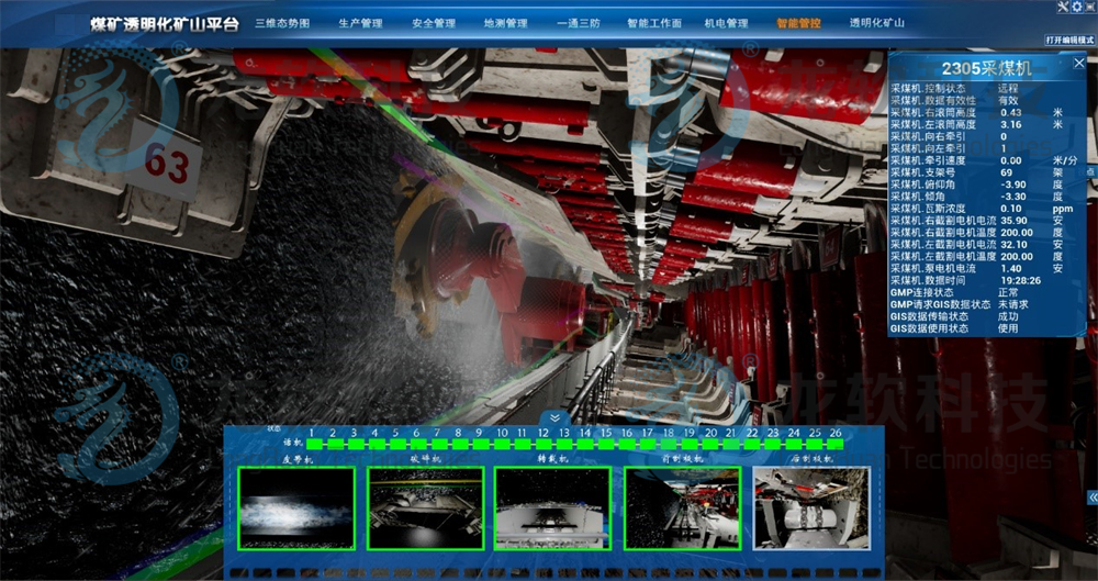 (2)集成安全監(jiān)測、人員定位、自動化、工業(yè)視頻等數(shù)據(jù),支持?jǐn)?shù)據(jù)驅(qū)動更新場景,動態(tài)自動更新場景,確保三維場景和井下工況一致。